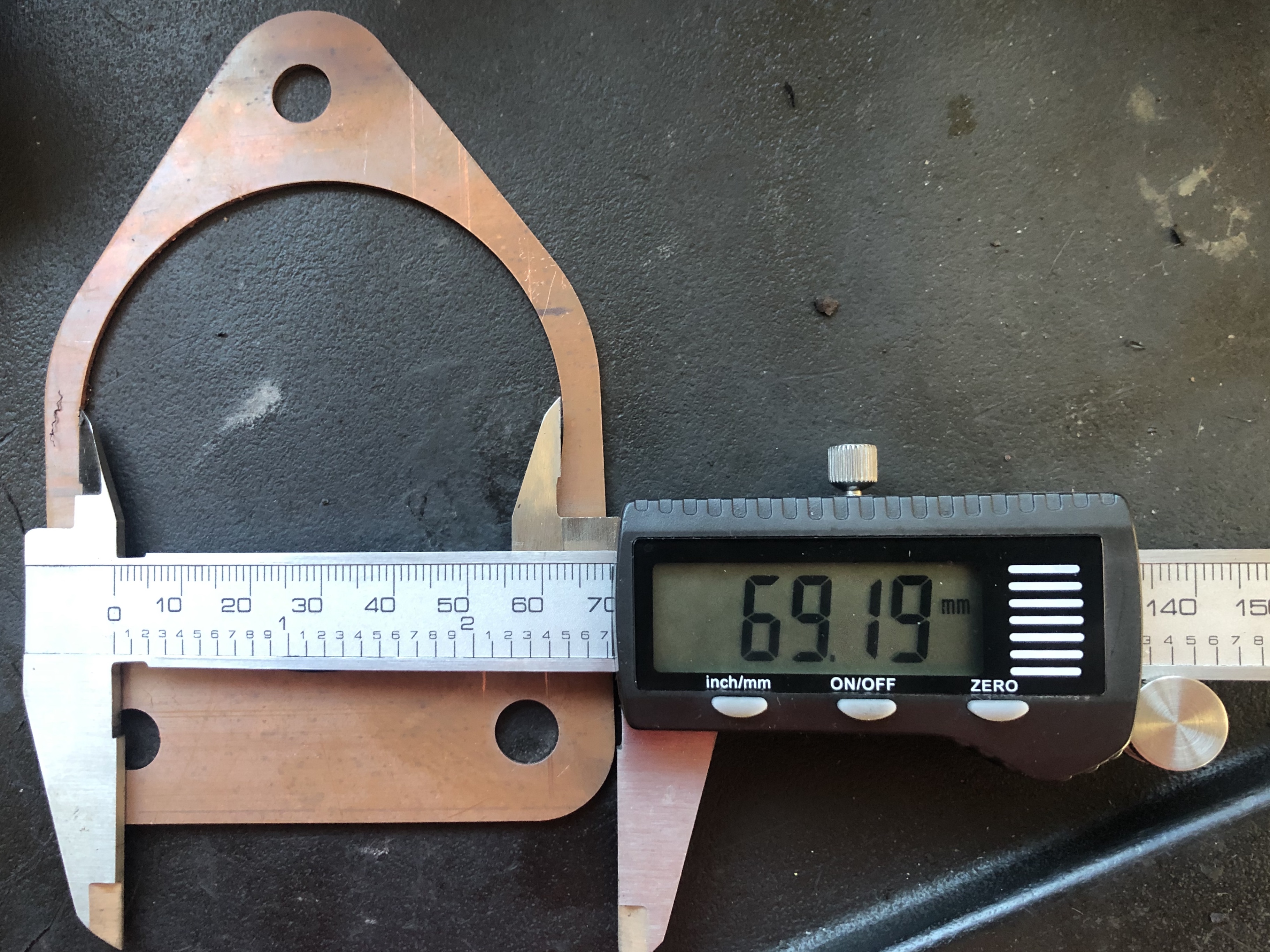 Die Dichtung ist aus Kupfer und 1,6 mm stark. Der Innendurchmesser beträgt 69mm.