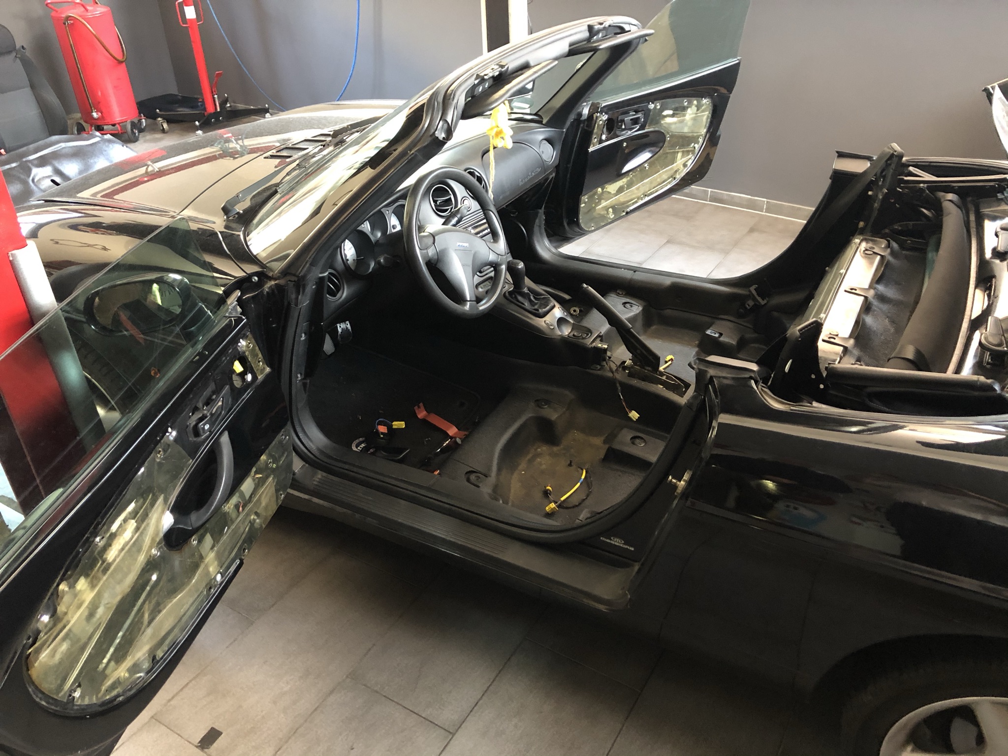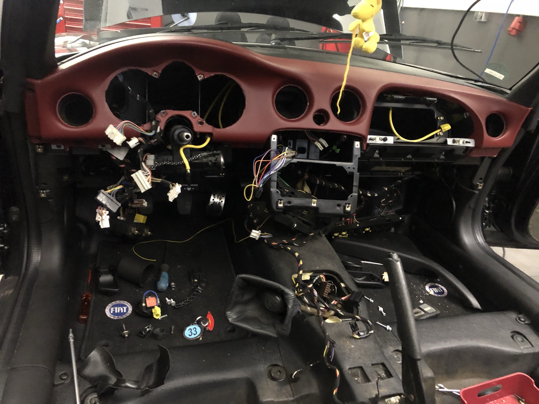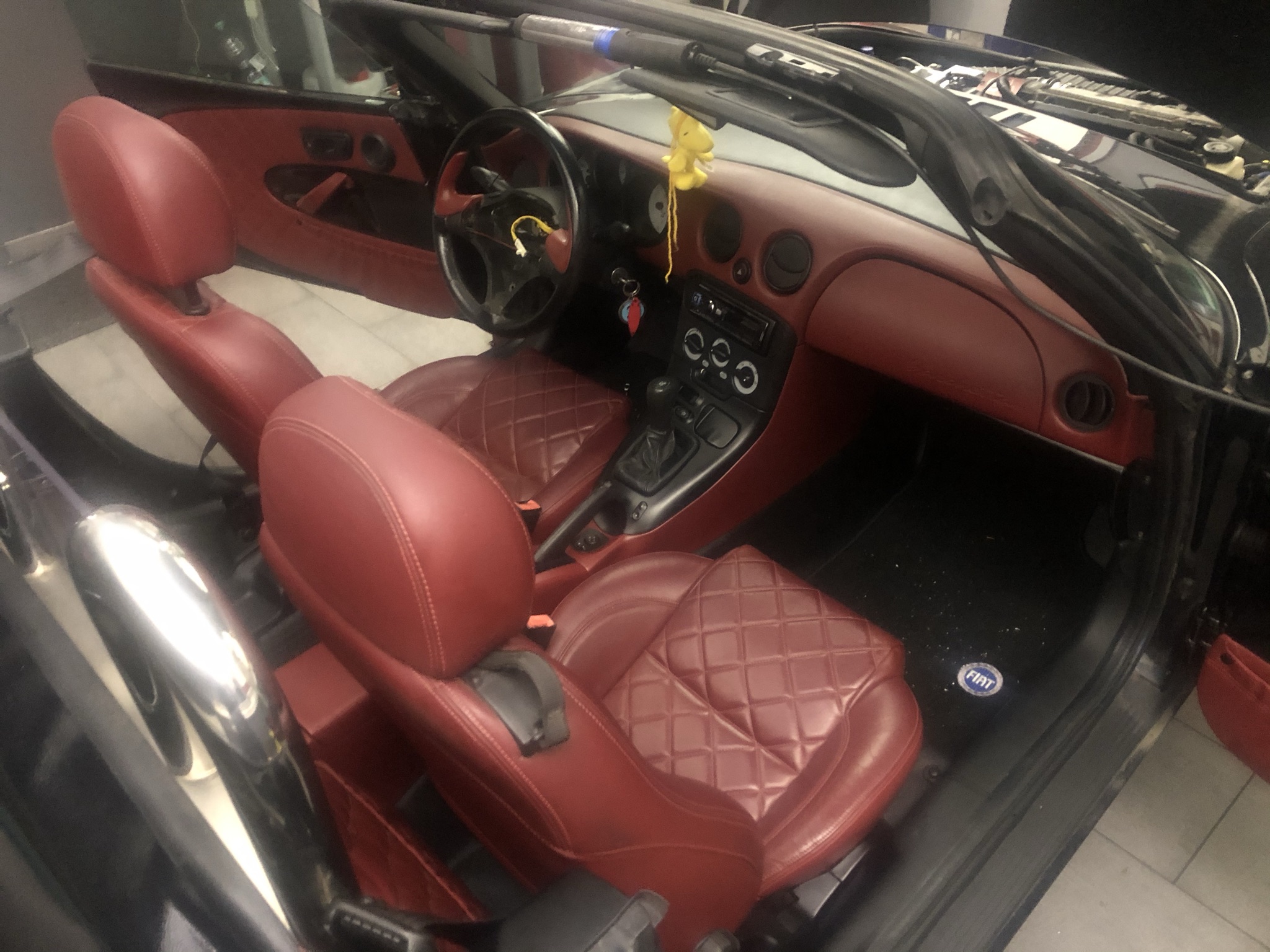 Der Wunsch des Kunden war, seine Fiat Barchetta im Innenraum auf die Variante „Limited Edition“ umbauen zu lassen. Die hier gezeigten Bilder stellen den Umfang der Umbauarbeiten dar. Es wurden Türverkleidungen, Armaturenbrett, beide Airbags, Lenkrad, komplette Mittelkonsole, beide Sitze und die Verkleidung hinter den Sitzen ausgetauscht.